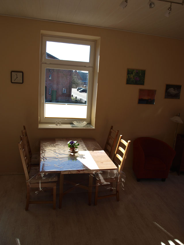 Ferienwohnung Seeblick im Bauernhaus Harder in Schmalensee. Ein Raum mit offener Küche, Essplatz und Wohnbereich mit Blick zum Schmalensee und eine Kamin- und Leseecke bilden das Herzstück der neuen Unterkunft. Zwei Schlafzimmer mit Doppelbetten und ein Schlafboden mit 2 Betten bieten Platz für 2 bis 6 Personen.
